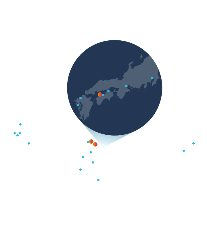 本社(今治) / 大西事業所 / 東京支店 / 福岡営業所 / 西条工場 / 長崎出張所 / 香川出張所 / 東海出張所